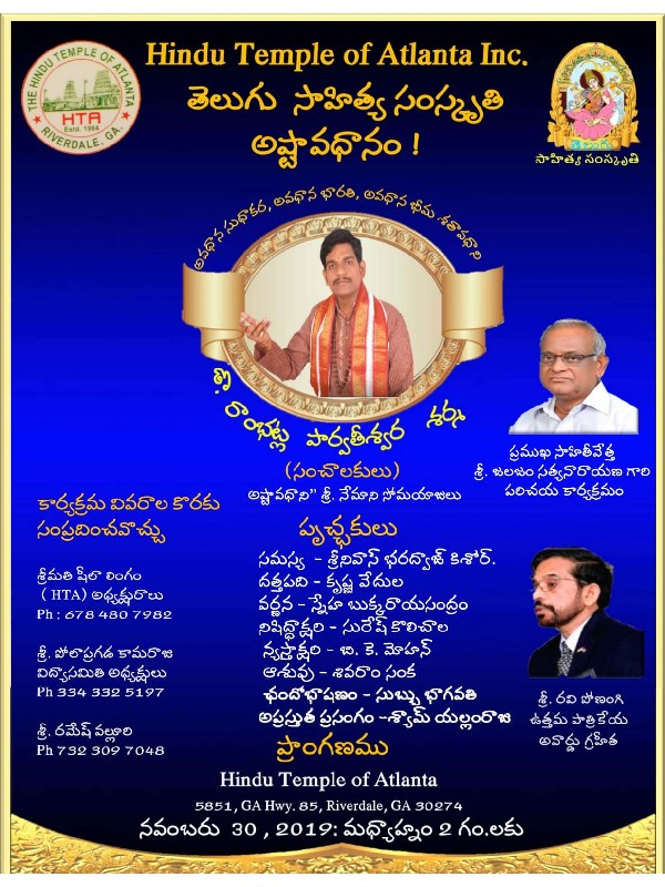 అట్లాంటా, జార్జియా - అష్టావధానం (30 నవంబరు, 2019)