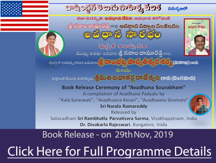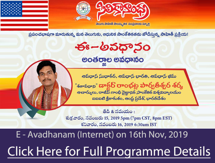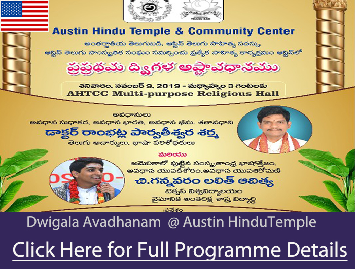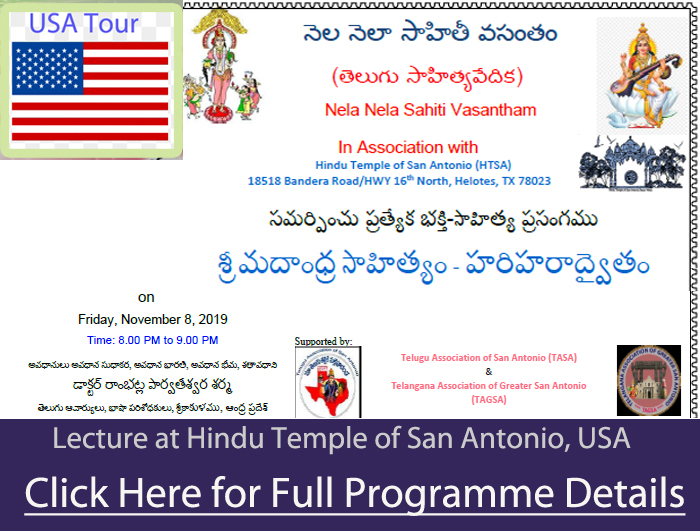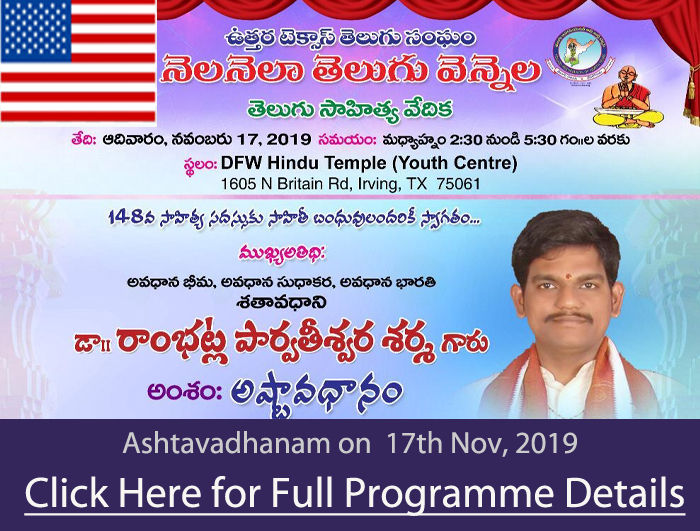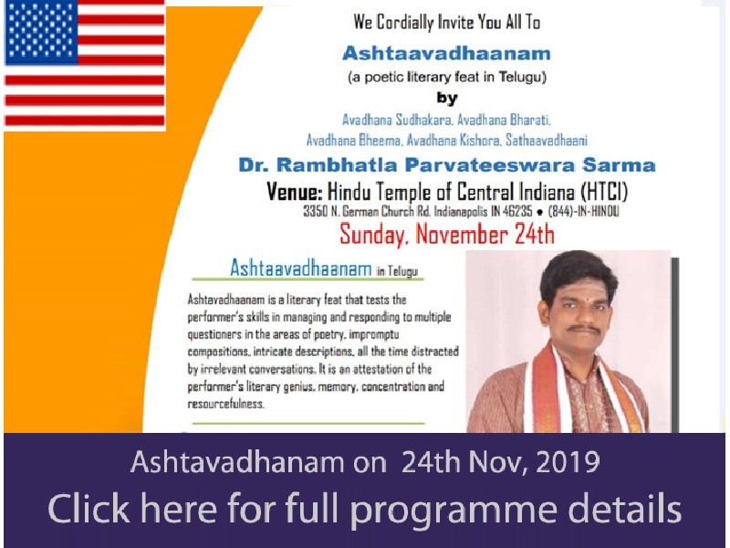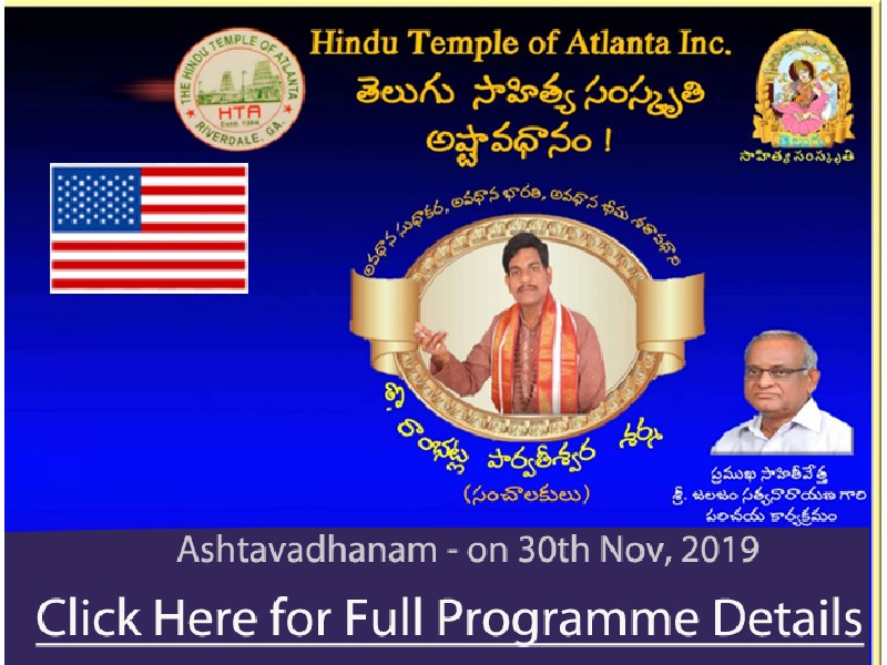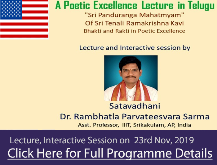 శతావధాని డా. రాంభట్ల పార్వతీశ్వర శర్మ అమెరికా అవధానాలు - ప్రసంగాలు (అక్టోబర్ 29 - డిశంబర్ 8, 2019) (40 రోజుల అమెరికా సాహితీ జైత్రయాత్ర)
